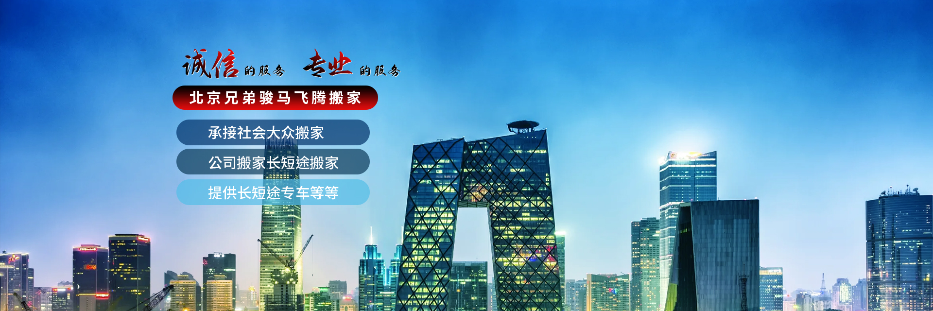 北京兄弟骏马飞腾搬家有限责任公司是一家重信誉的专业搬家公司,拥有多种车型,专业的服务人员,负责承接北京范围内的社会大众搬家,公司搬家长短途搬家,等业务,可提供长短途专车。